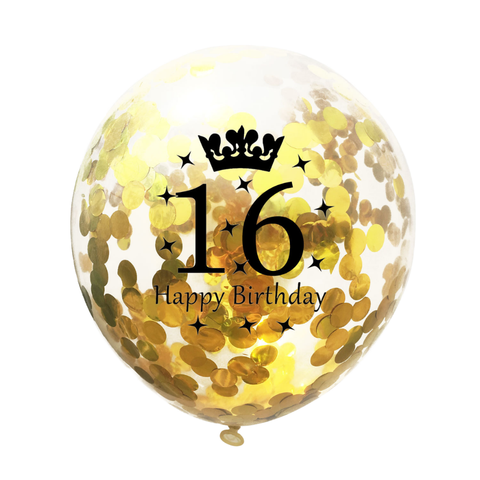 Variedade de Balões Redondos de Látex Impressos com Coroa Digital, Decorações de Papel para Festa de Aniversário de 16 Anos para Adultos